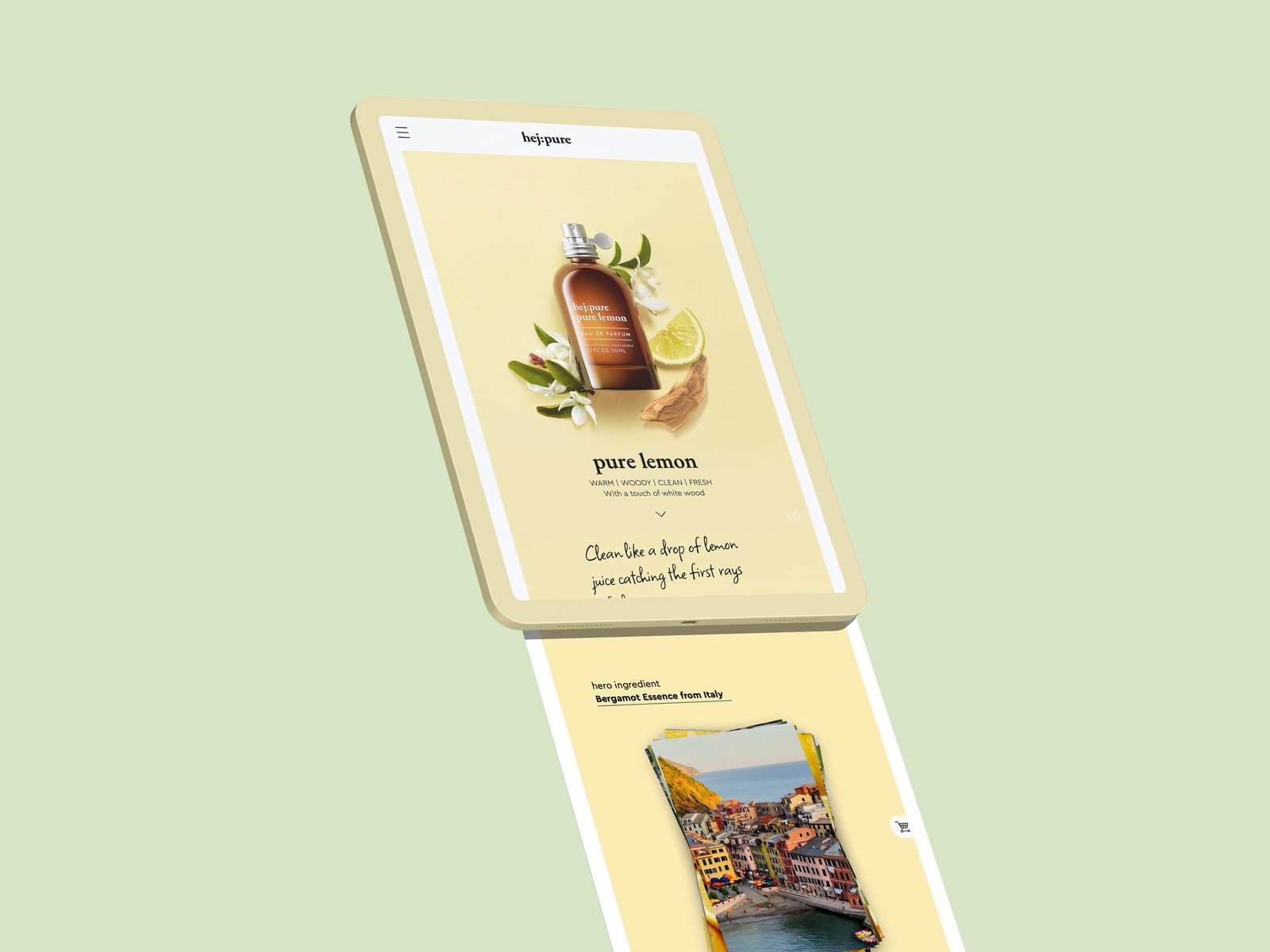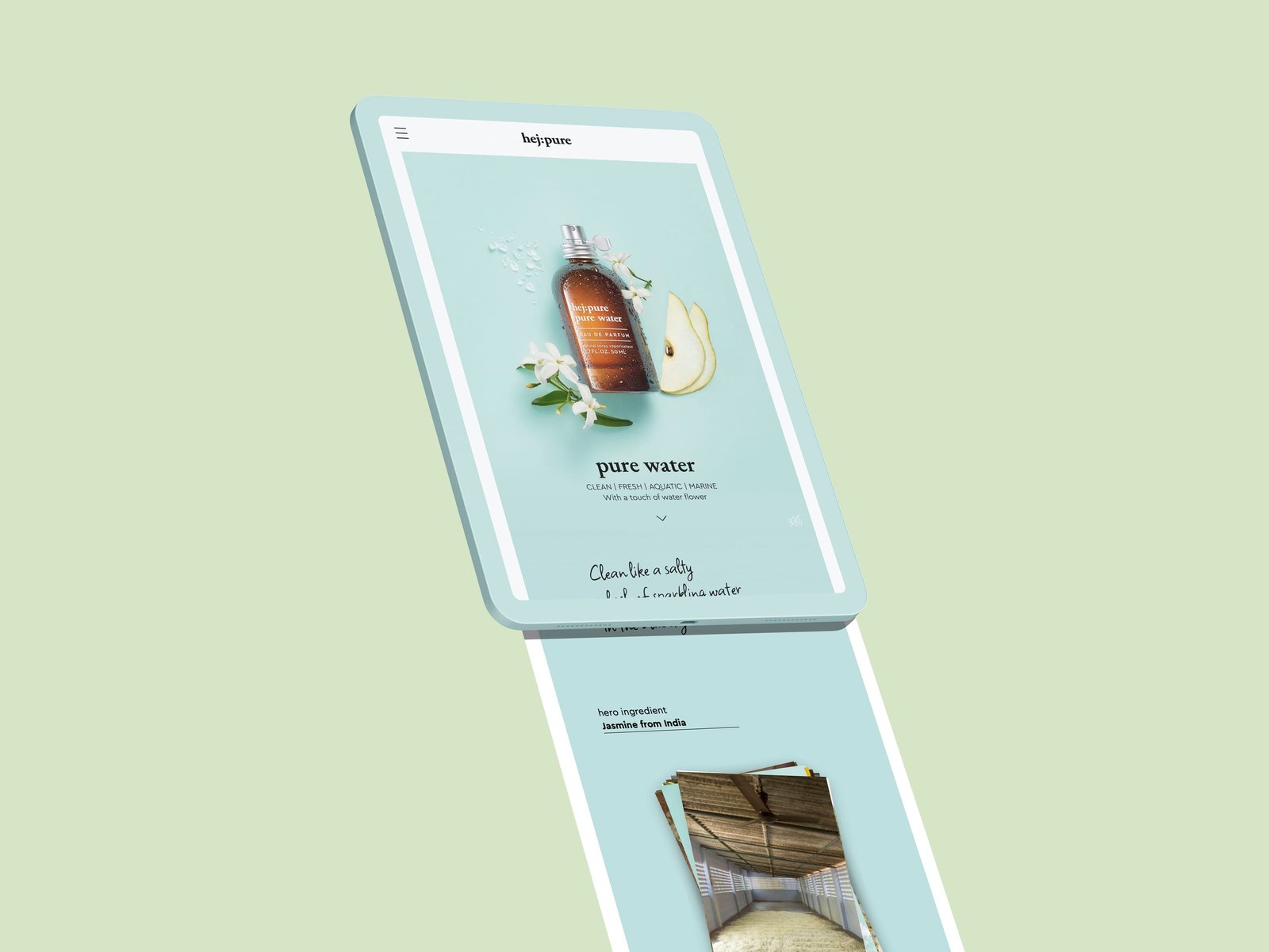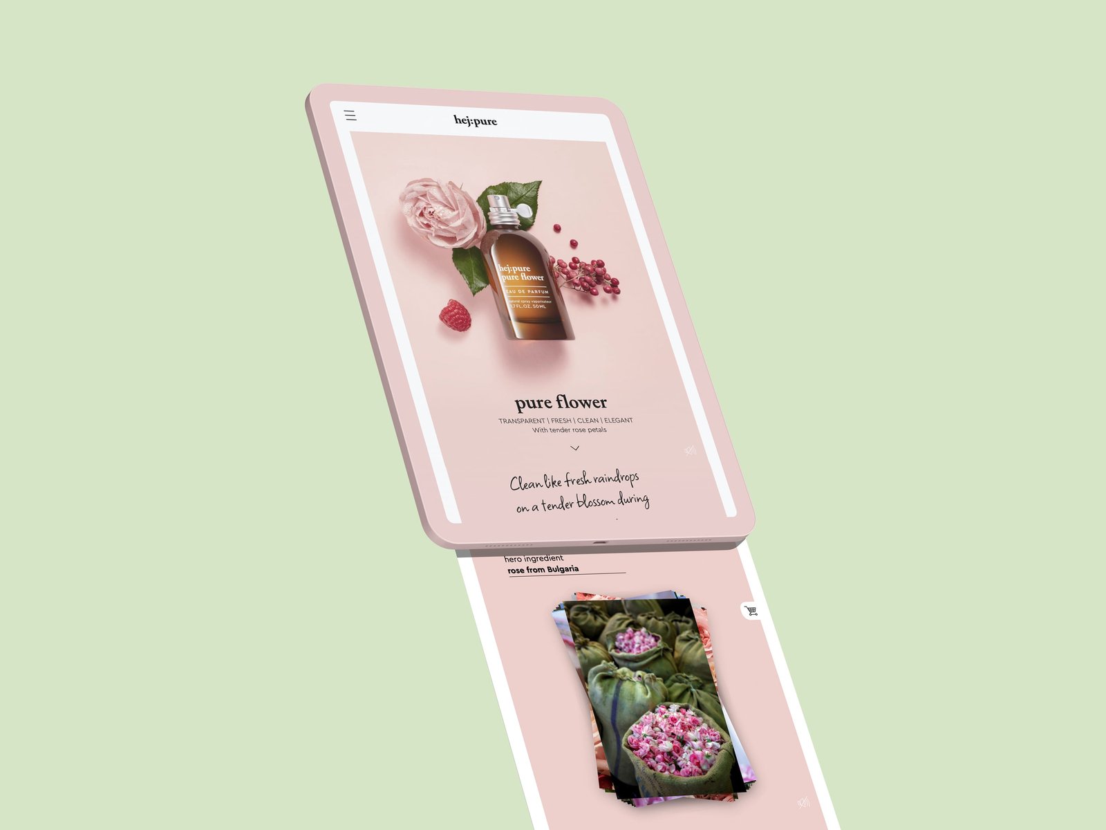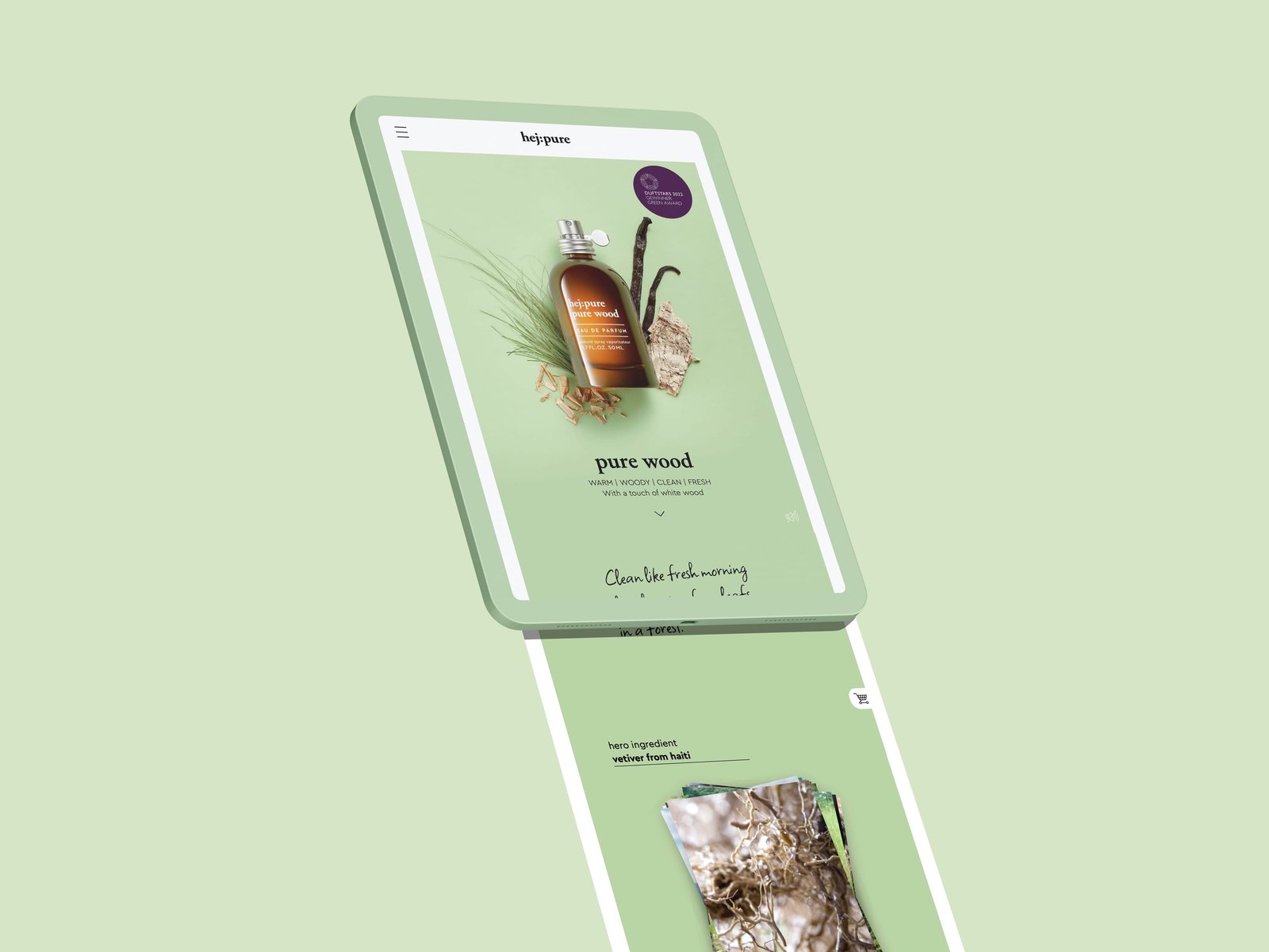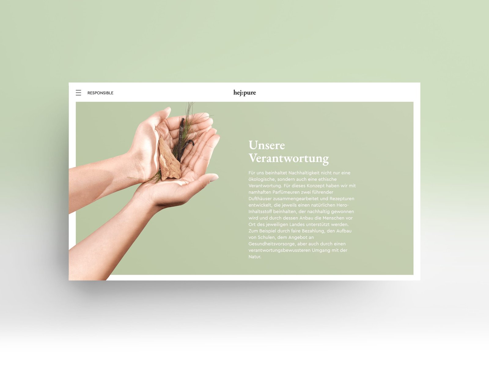 hej:pure – „CLEAN BEAUTY“ steht für Duftkreationen, die ohne bestimmte, kontrovers diskutierte Inhaltsstoffe produziert werden. Nachhaltigkeit konsequent umgesetzt, von der Faltschachtel bis hin zum Duft – pur und klar und deutlich. So haben wir auch die Website der neuen Brand umgesetzt.