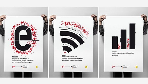 Es entstand eine Plakatreihe mit Motiven zum Thema Telexmedizin in Entwicklungsländern.