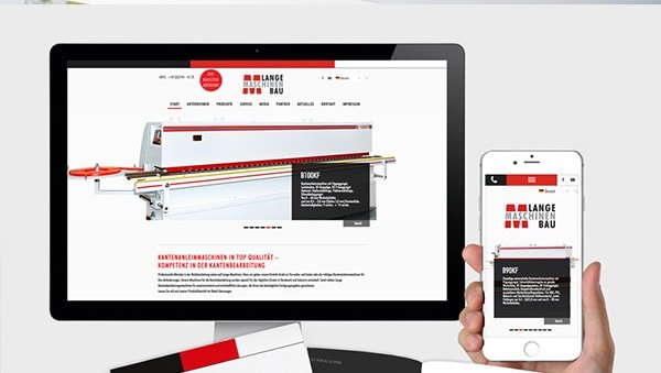 Kantenanleimmaschinen der Firma Lange. Für das Maschinenbau-Unternehmen wurde ein Erscheinungsbild entworfen und in diversen Medien konsequent umgesetzt. Die bereits gegebenen Farben und das Logo wurden weiterentwickelt. Die Medien umfassen die Geschäftsausstattung, Maschinenkarten, die Website und den Entwurf von Messeständen.